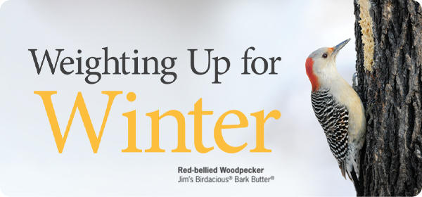 As winter takes hold, you can add to the bounty by providing Jim’s Birdacious®️ Bark Butter®️, a food that's hard to beat when it comes to giving birds the high-energy/high-fat content they need to survive. Plus, it has a fun name!